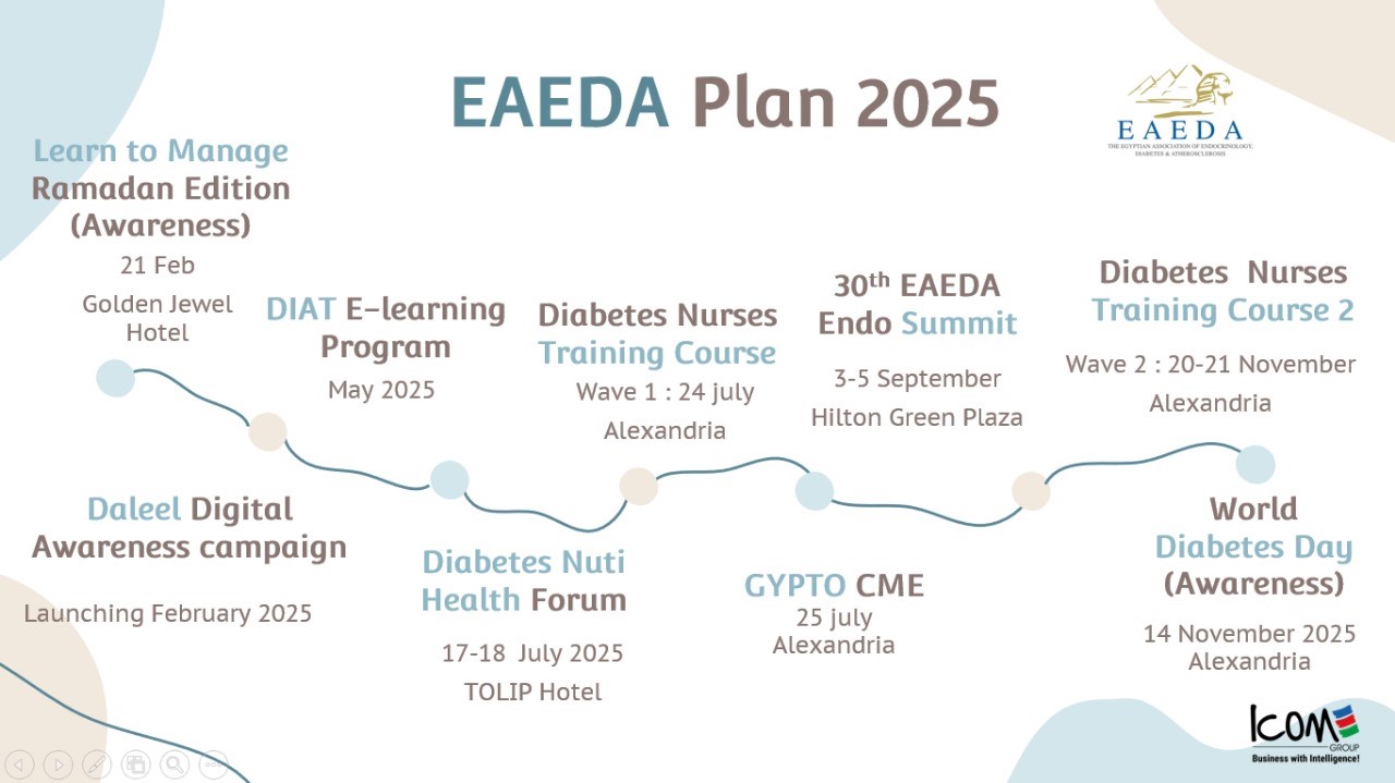 EAEDA is committed to enhancing healthcare standards in Egypt by promoting research, education, and collaboration among healthcare professionals specializing in endocrinology, diabetes, and atherosclerosis. The association aims to facilitate the exchange of knowledge and best practices to improve patient outcomes and public health.​